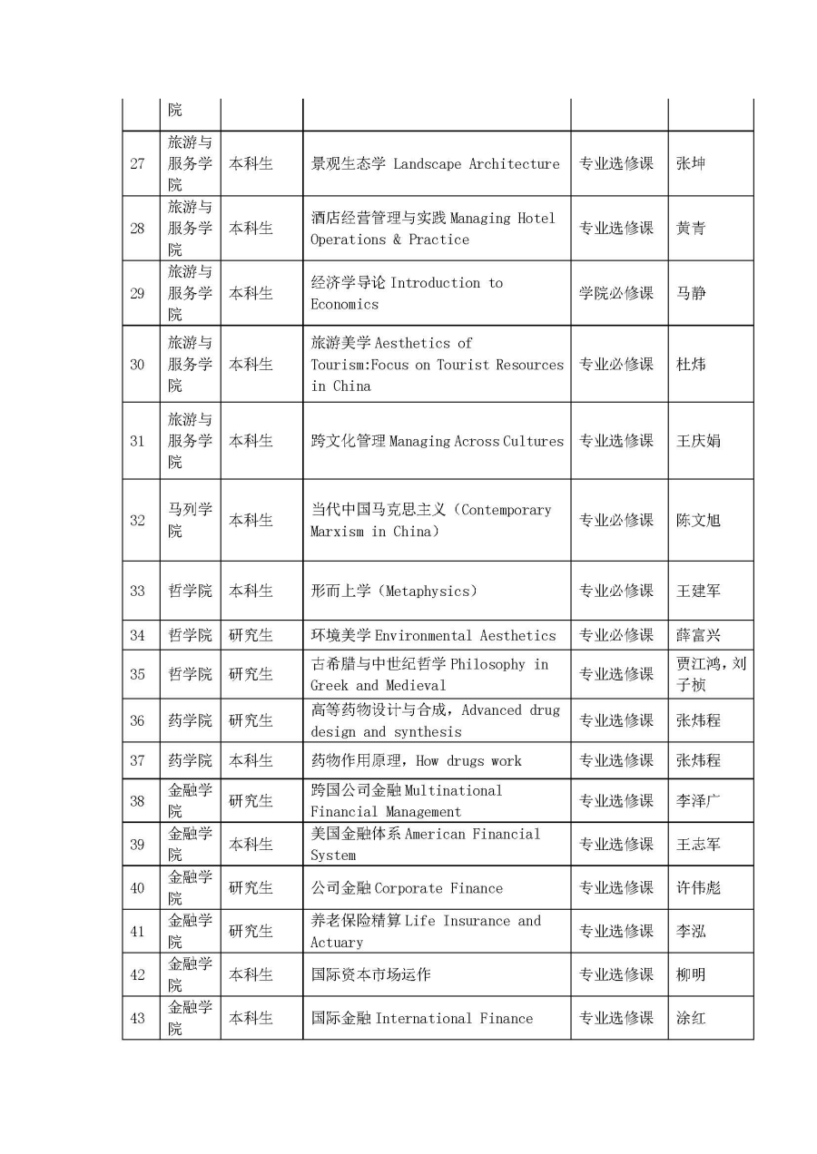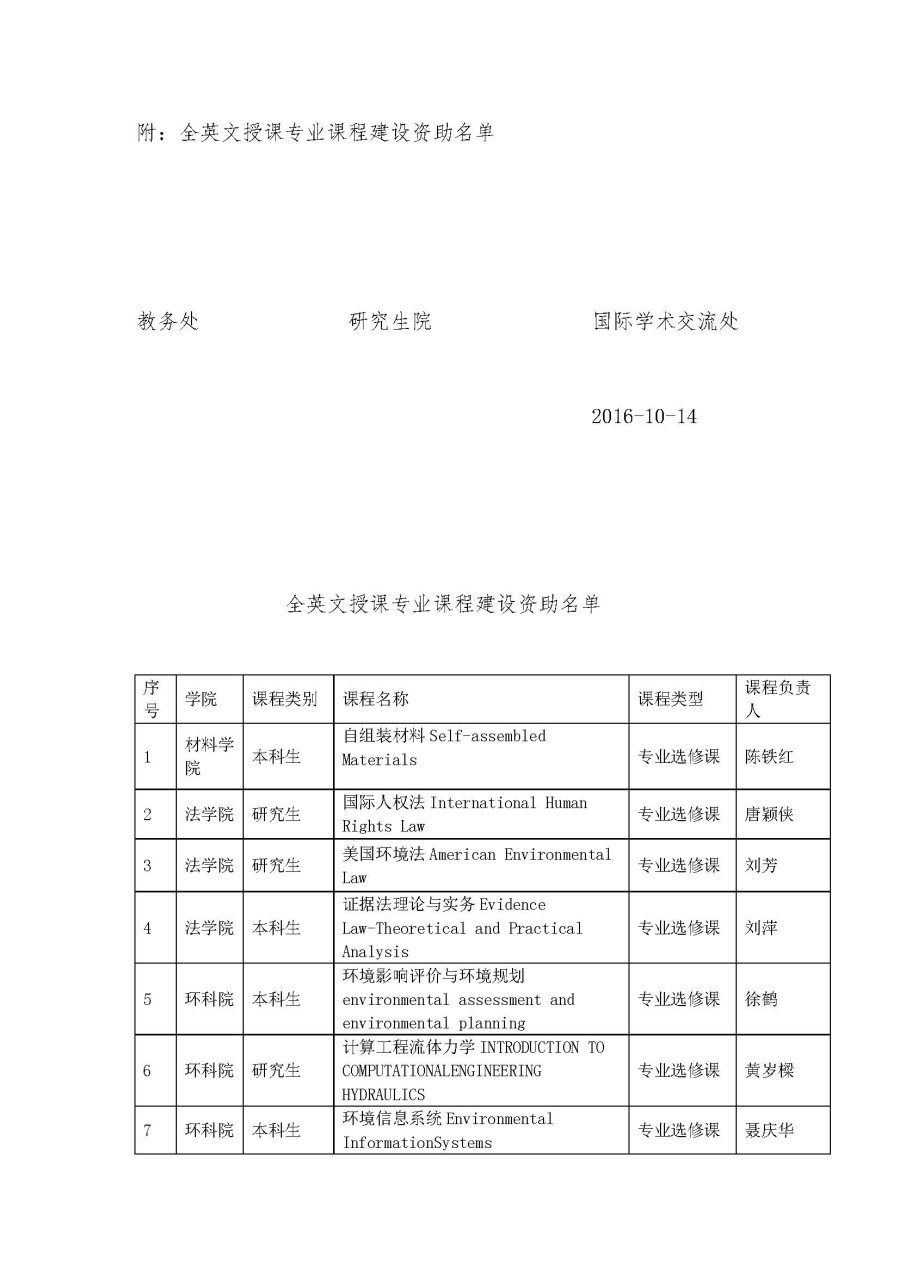 关于公布2016年beat365vip官网登录入口全英文授课专业课程建设资助名单的通知