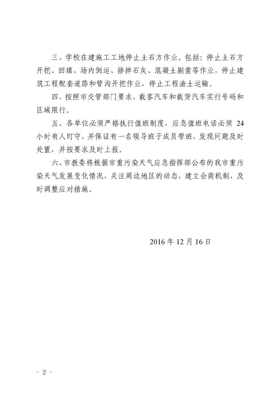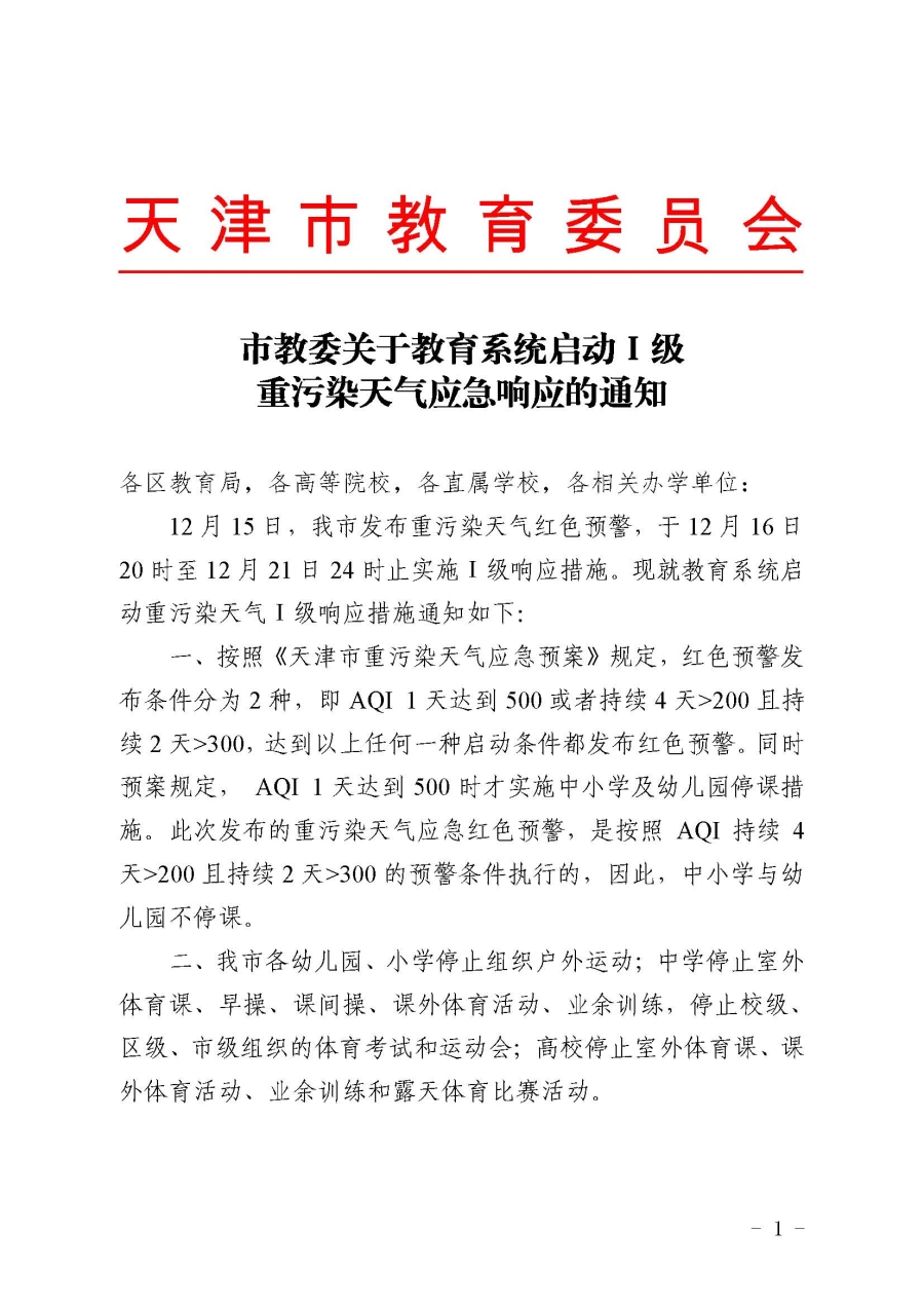 市教委关于教育系统启动Ⅰ级重污染天气应急响应的通知