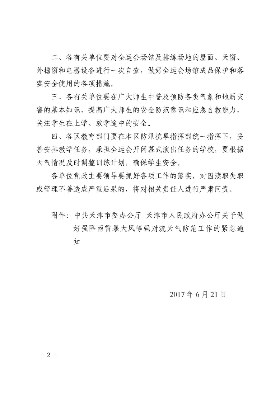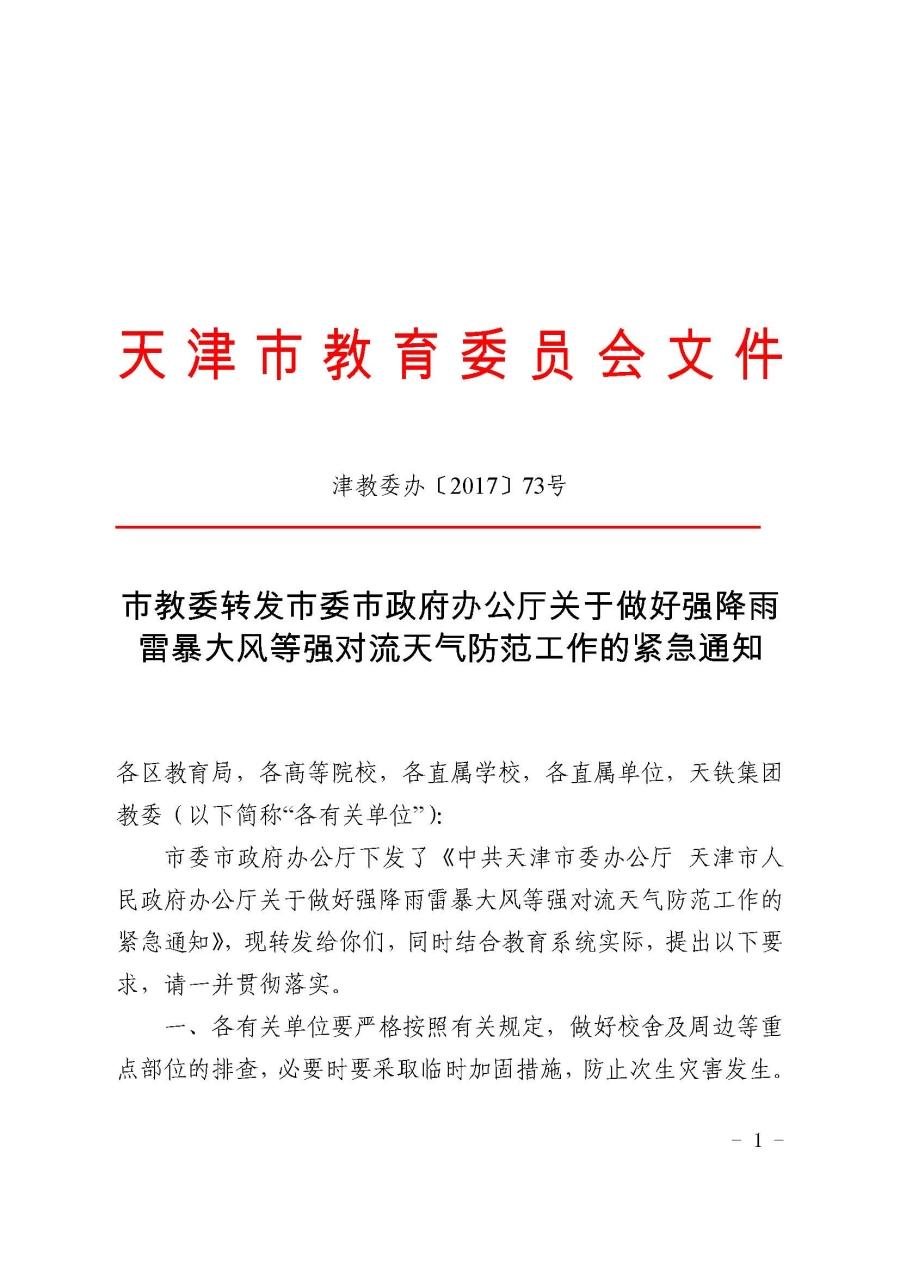 市教委转发市委市政府办公厅关于做好强降雨雷暴大风等强对流天气防范工作的紧急通知