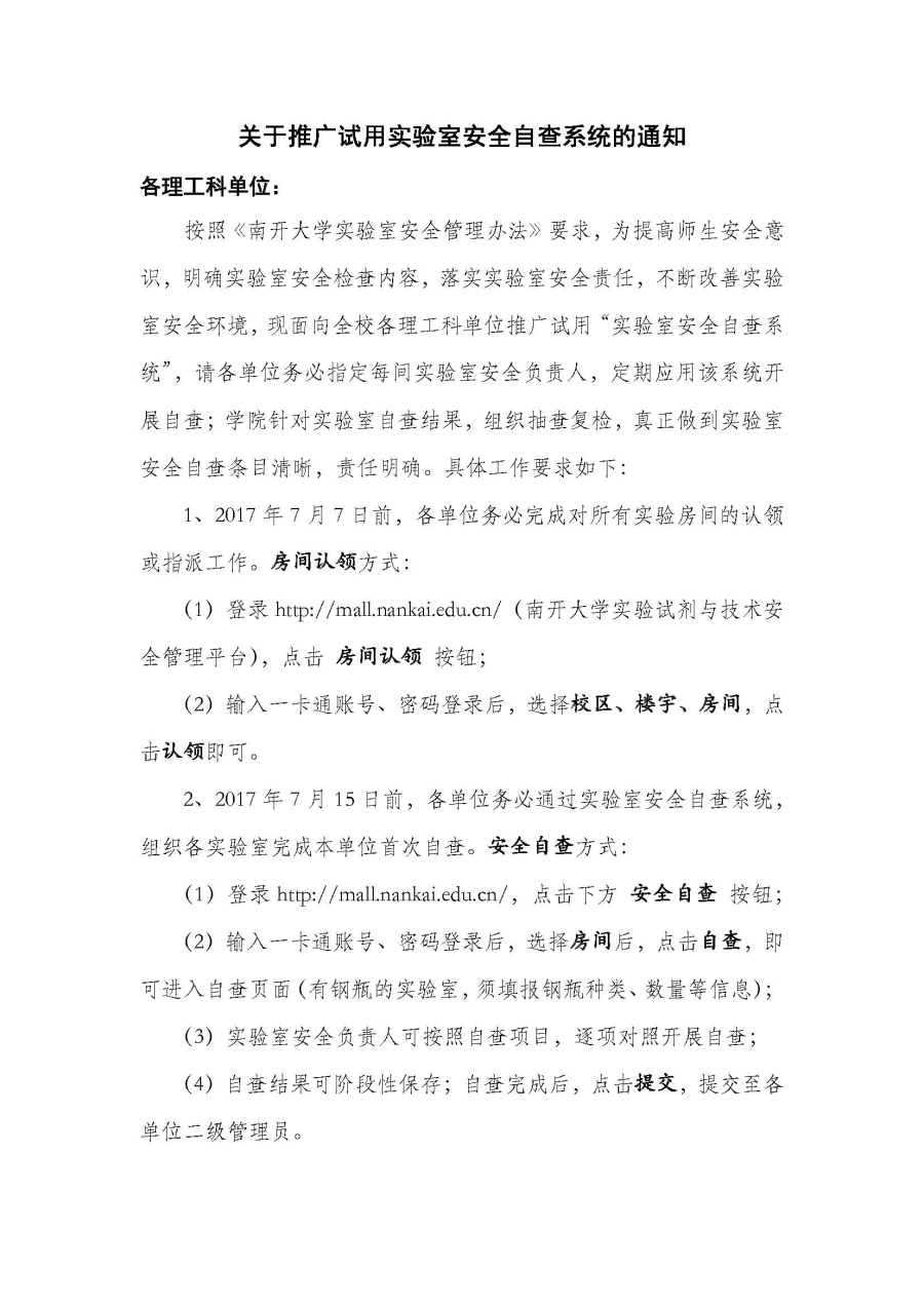 关于推广试用实验室安全自查系统的通知