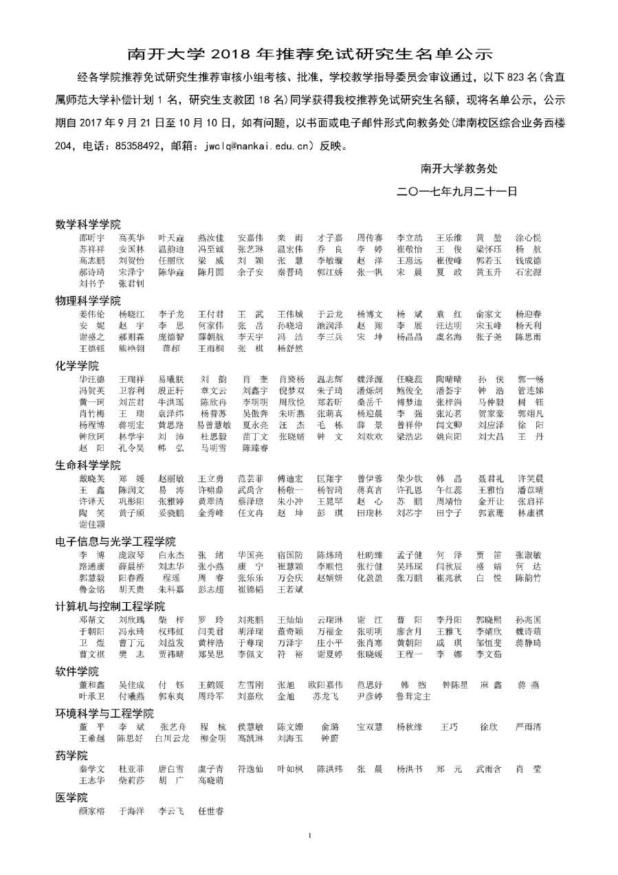 beat365vip官网登录入口2018年推荐免试研究生名单公示