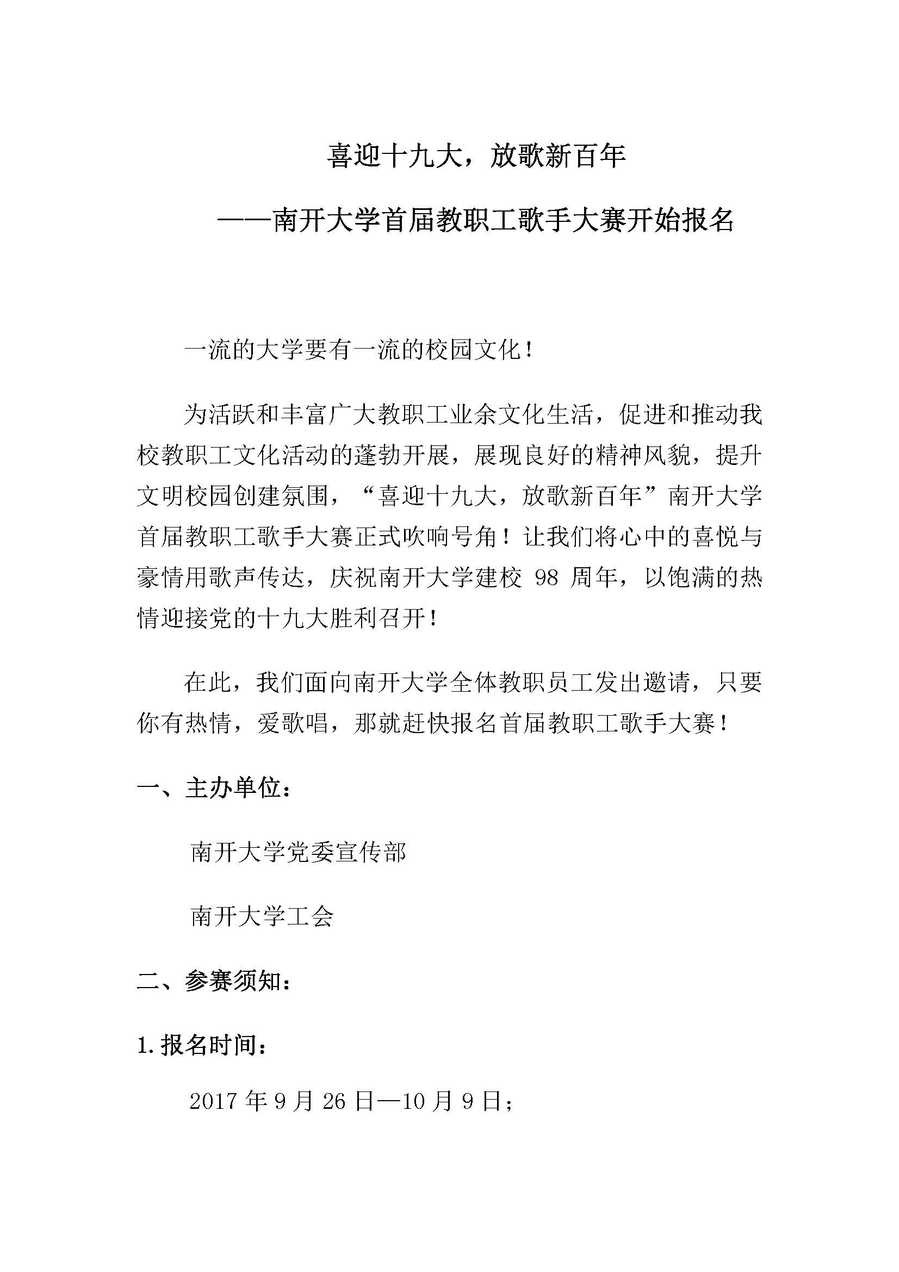喜迎十九大,放歌新百年——beat365vip官网登录入口首届教职工歌手大赛开始报名