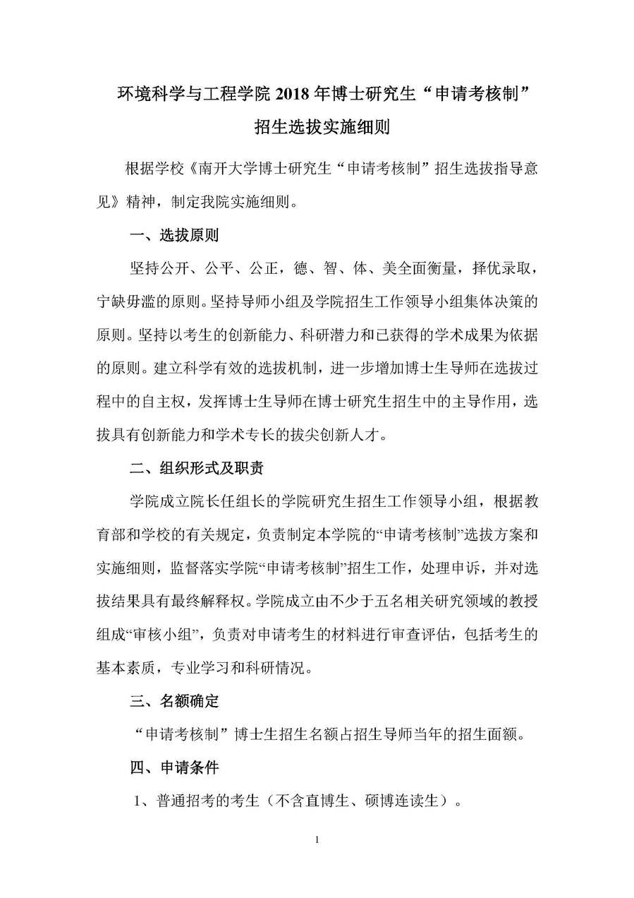 环境科学与工程学院2018年博士研究生“申请考核制”招生选拔实施细则