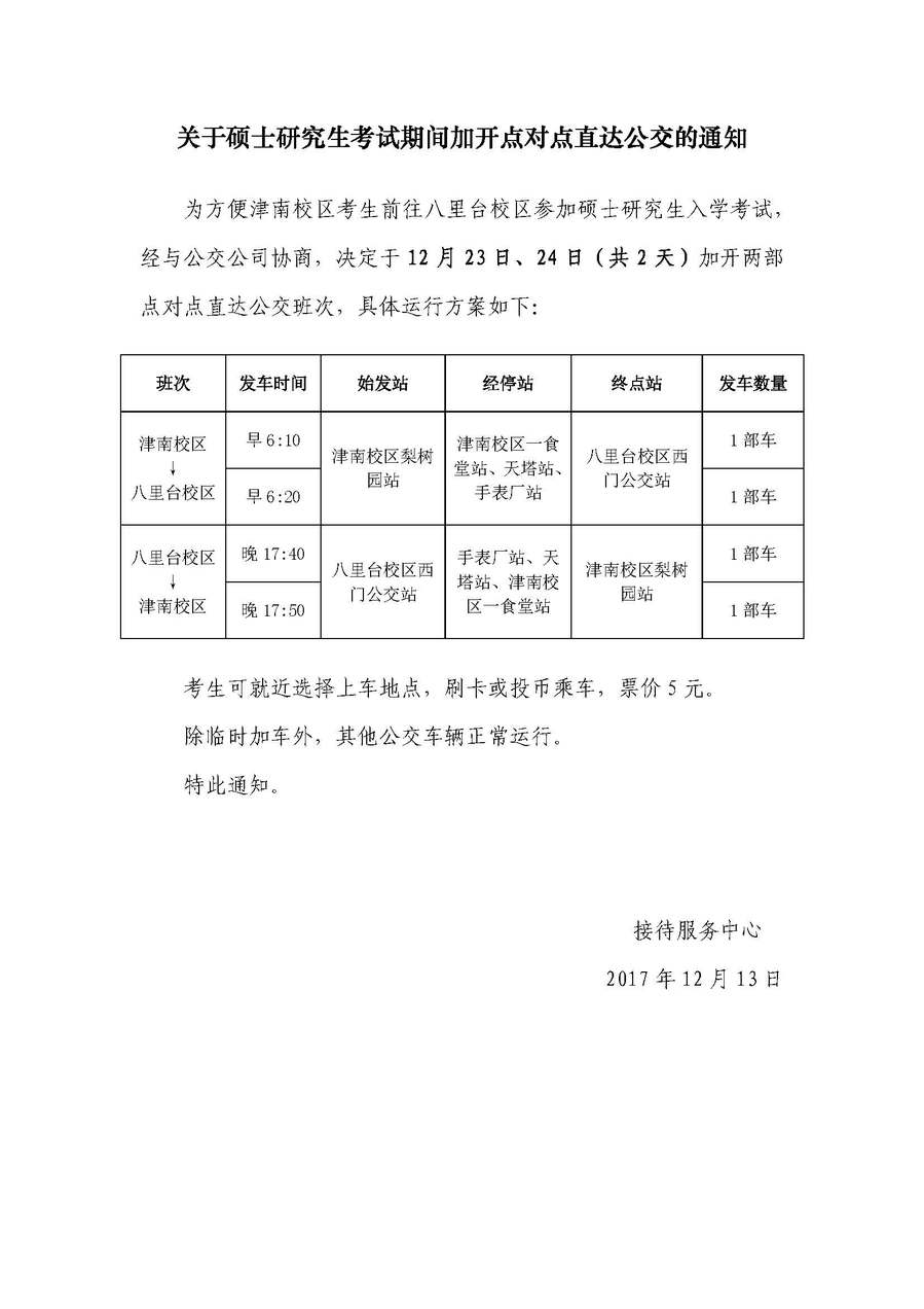 关于硕士研究生考试期间加开点对点直达公交的通知