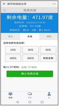 1. 根据信息和财务安全要求,微信购电及自助查询功能仅支持在连接校园网NKU_WLAN的情况下使用。