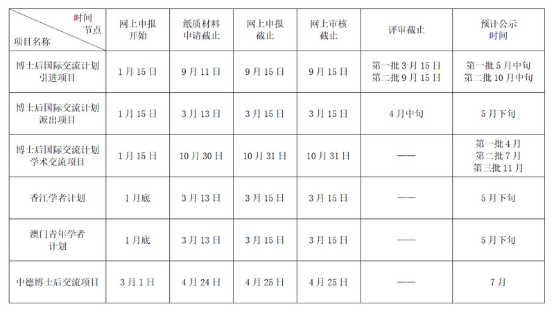 请额外注意下表中纸质材料申请截止日期。各位博士后请在纸质材料申请截止日期前将相关材料交至津南校区综合业务西楼408。